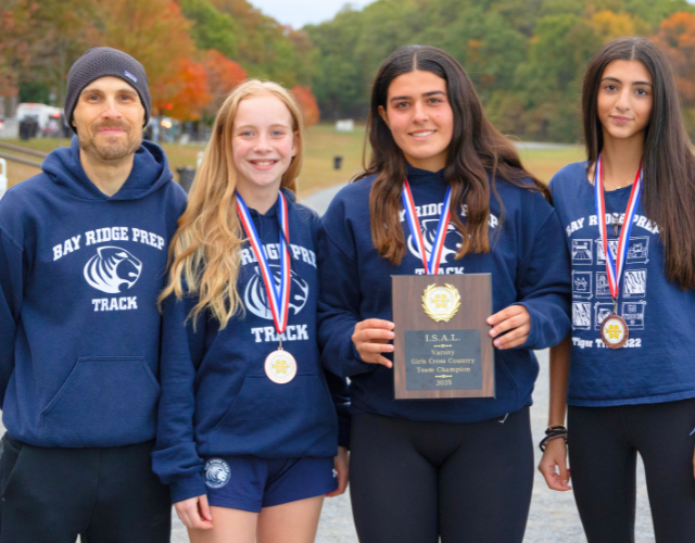 The Bay Ridge Prep Varsity Girls Cross Country Tigers made school history on October 23 by capturing the ISAL Championship title for the first time. The victory was led by strong performances from Selina Psarras, Lucy Drobnyk, and Ava Gouzos, who together secured the top team score to bring home the championship at the league’s final meet.