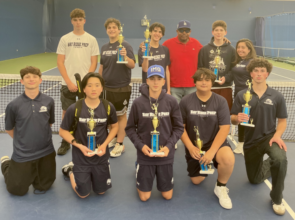 The Bay Ridge Prep Varsity Boys Tennis Tigers made history on May 8 while playing in their first ever ISAL tournament and sweeping the board! Winning first place in each of the five categories to take home some hardware, the champions include three 9th Graders, indicating that the tennis program has a strong foundation to continue to build on their success in the future.
